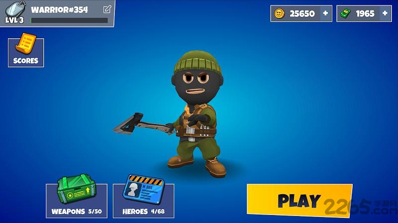 勇士大作战最新版 是一款动作射击类的 横版游戏 ,游戏画面简约卡通,玩家在游戏中操作Q版的游戏角色进行冒险探索,同时游戏中还设定有丰富的游戏场景可供玩家自由探索!游戏中还设定有各种各样的武器,任意选择进行对战攻击!