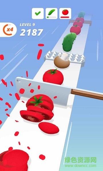 2、分数越高越好,滚动的板上躺着可怜的蔬菜,用力的切碎,获取属于你的奖励。
