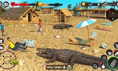 在鳄鱼游戏中,愤怒的鳄鱼可以在沙滩上游泳、奔跑、追逐人类。