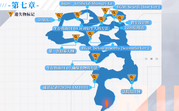【教堂设计图】光点(遗失物品)的位置在下图所示处,进入第七章地图后,右拐后一路向上走到尽头(不要左拐),如下图所示的集装箱边上。