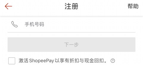 那么我们这个时候可以勾选下面一行的【激活ShopeePay】以享有折扣与现金会扣。所以这样就可以直接注册成功了。所以你们就用手机号码注册吧,这样记起来也方便,也不需要其他的内容了!