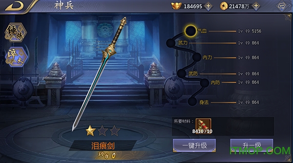 通过游历积分在商店中换取神兵碎片拼装神兵。
