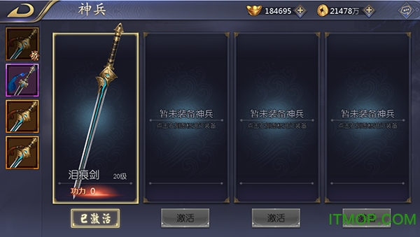 现在在游戏中可以获得的神兵有:家传宝剑、泪痕剑