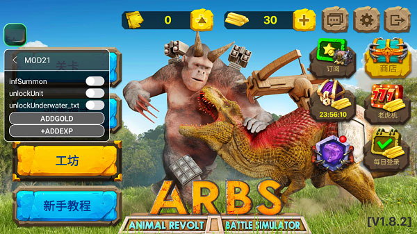 动物战争模拟器无限金币版 是一款开放性的模拟沙盒动物策略对战手游,采用了全新的3D引擎打造高清游戏画面,超刺激的野兽争霸对决,有着超大世界场景设定,以及逼真的战斗特效真实打击,再加上趣味的策略对战玩法, 致力于给玩家带来全新的游戏体验。游戏中动物和人类将会分成两个阵营,玩家将操纵人类这一方,在这期间你可以通过用金币召唤人类去对抗动物,人类阵营拥有多种兵种供玩家选择,每类兵种的技能和玩法都是各不相同的,当召唤的人类够多时,玩家就可以发起进攻,与动物来个你死我活。另外该游戏还拥有闯关和沙盒两种游戏模式,在闯关模式中有着特别多的战斗地图,玩家可以通过不断闯关获得金币,以此解锁更多的兵种和动物,让玩法变得更加丰富有趣。