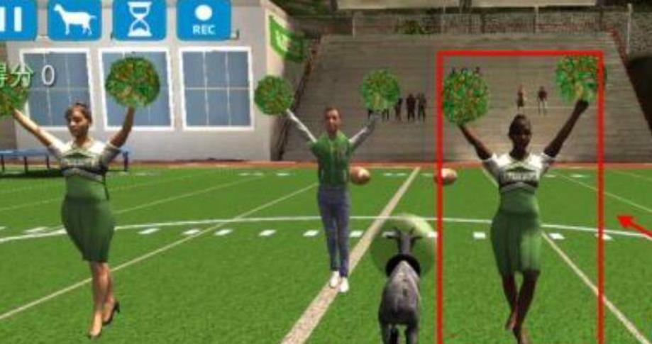 3、球场上有3个啦啦队员,用舌头抓住右侧最黑的那个啦啦队员。