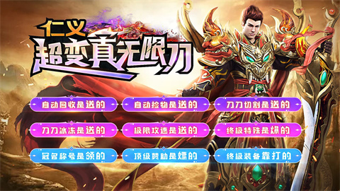 仁义超变真无限刀为玩家带来精彩爽快的无限刀玩法,开局即可获得满攻速,庞大的世界场景,玩家能够自由地展开探索,尽情享受刷怪打金的战斗玩法,感受刀刀暴击的爽快体验,享受遍地神装的震撼感受,畅享爽快的传奇冒险之旅。