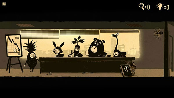 办公室的生活日复一日,每天重复地敲打着键盘,参加着一成不变的无聊会议,穿着同样的毛绒连体睡衣,直到有一天,一朵红色的小花打破了宁静~ ~ 办公室冒险 是一款幽默风趣的冒险解密游戏,游戏画面整体采用黑色与黄色的配色,极少部分有白色,比黑白配色多了一种压抑和温馨并存的感觉,主人公则是一个丧丧的大叔,他和NPC的表情都很丰富传神,这可以给玩家一种身处其中的感觉。而在游戏中唯一算得上色彩的就是那朵小红花,开始冒险是因为小红花激起了大叔心中挣脱束缚的愿望,小红花也可以看做是主人公对自由和快乐的渴望。另外办公室冒险游戏的解密难度整体式中部分需要数学解密的地方有点难度,目前一共有四章,每章分为3到5个小场景左右,玩家需要通过自己的细致观察和智慧,破解保险箱密码,学会使用风扇,找出房间中各种有用的线索,破解重重谜团,最终帮助大叔成功逃离办公室,享受挣脱枷锁,自由呼吸的快乐。