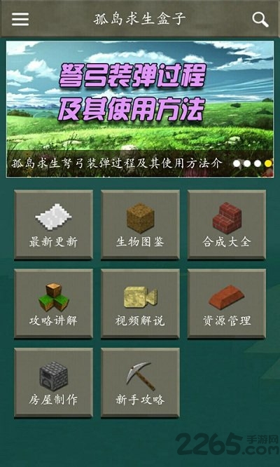 孤岛求生盒子官方版 是一款辅助游戏工具,有各式各样的中文版攻略,专门为孤岛求生的玩家们提供方便快捷的辅助材料,不仅有新手攻略,还有资源更新和视频解说,方便刚入手的新人玩家,还有房屋制作方法和各类图鉴,需要的快来2265安卓网下载吧!