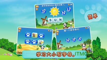 集合了各种不同类别的儿童单词,英语字母和单词均为纯正美国本土配音,并分别都有大,小写字母的学习;
