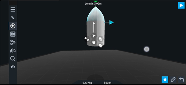 2、 检查火箭部件的缺陷并添加对称部件,对称模式可用于连接到燃料箱侧面的部件,它会在燃料箱的周围动态地创建克隆的部分。
