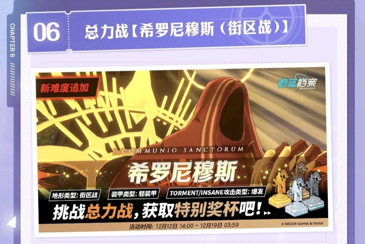 总力战方面,心奈核心技能的触发条件目前最适合的还是配合水富婆打近期登场的街区主教,可以比较快速的达到100次暴击,当然关键还是看运气。