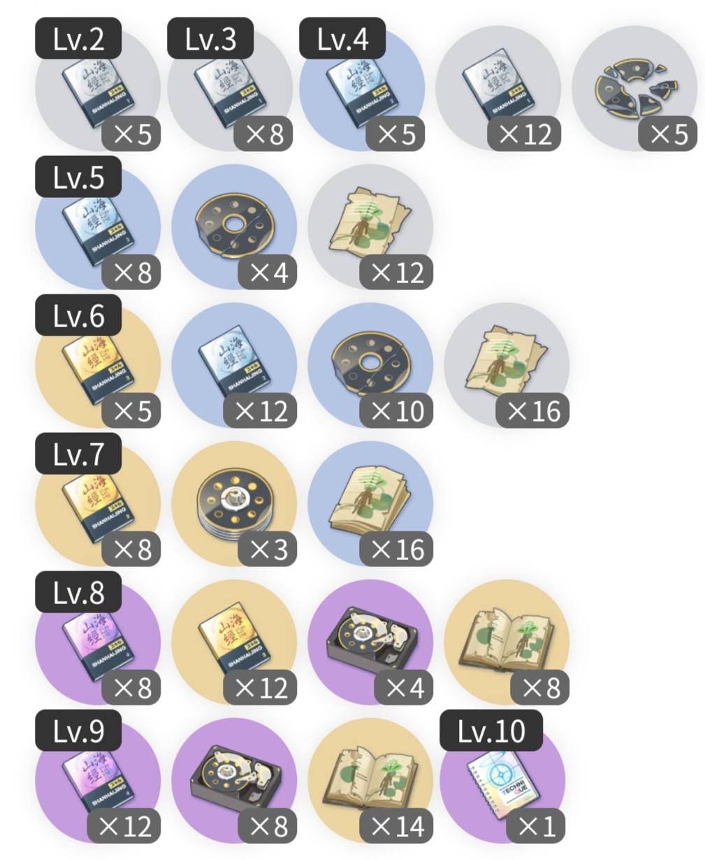 后期材料充足的情况下可以按Ex→被动技能→普通技能→辅助技能依次升满
