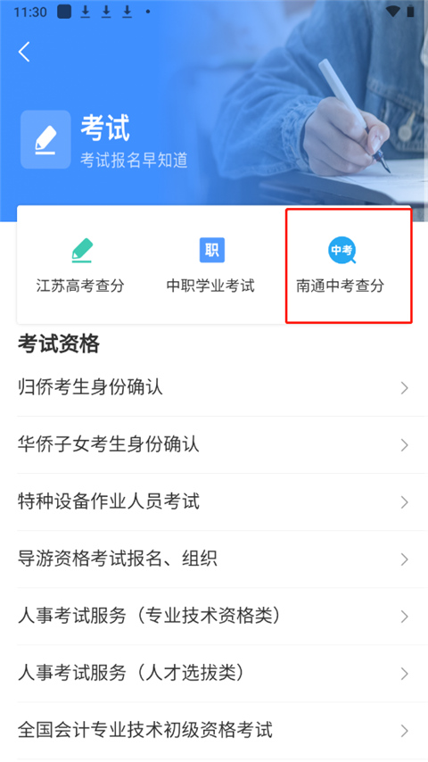 3、进入“南通中考查分”,根据提示输入信息查询成绩即可;