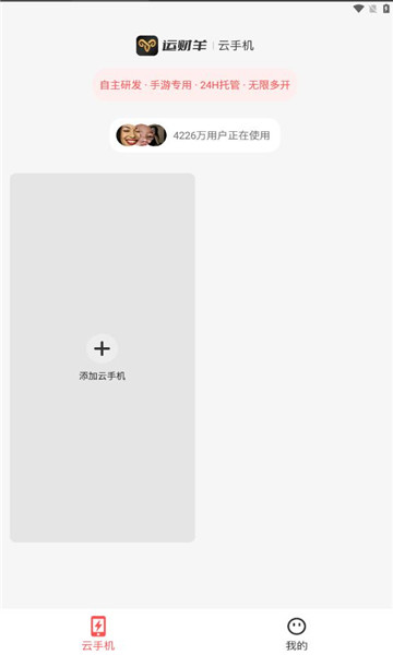 运财羊app是由武汉牛赞赞科技有限公司推出的一款虚拟云手机平台,可以让你实现24小时手游挂机,只需要添加云手机即可操作,还有免费时长可以领取,支持手机多开,同时在线,不耗费手机流量。