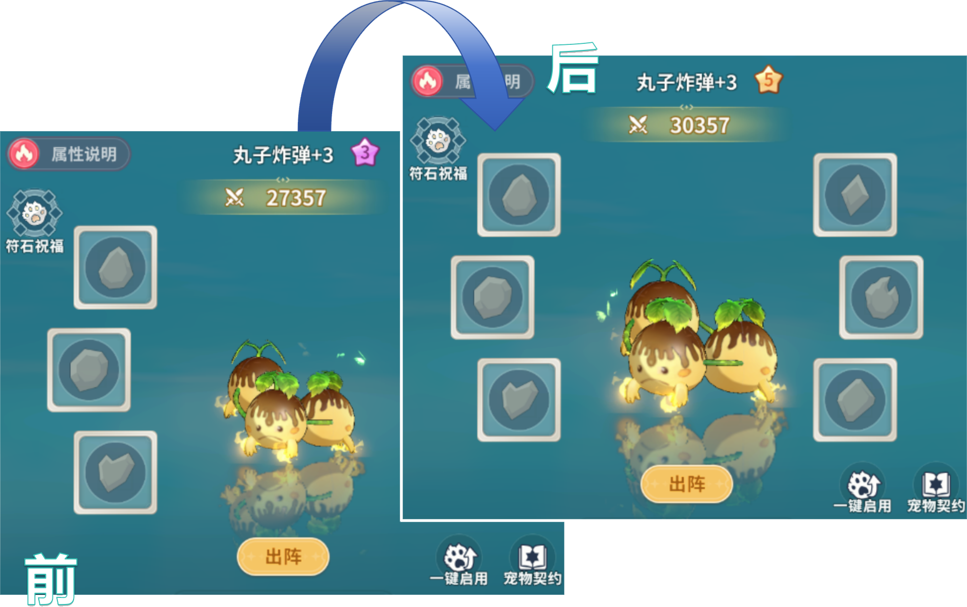 宠物装备所有部位的宠物符石,并且所有宠物符石到达指定品质后可以激活符石祝福为宠物提高属性。