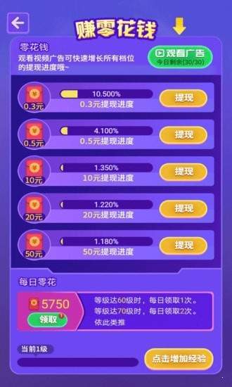 3、虽然每一关获得的红包奖励不是很多,但达到门槛就能随时兑换
