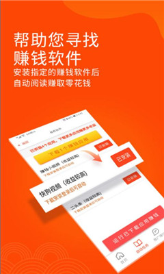 2、然后点击自动任务——运行已下载的应用赚钱,挂机之前会提示你打开阅读助手的浮窗显示等权限。
