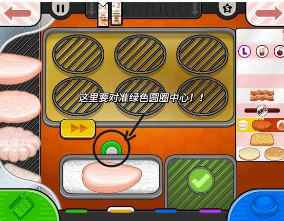 在制作肉饼时,中国版的爸爸汉堡店需要按照指针提示来满足顾客的要求。