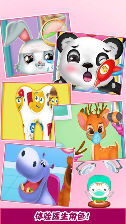 1、卡通画风 设计 ,体验当医生的乐趣,来这里照顾更多的小动物们;