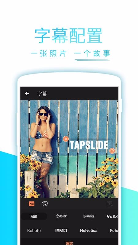 添加字幕,图片上增加文本,丰富的字体、颜色选择。