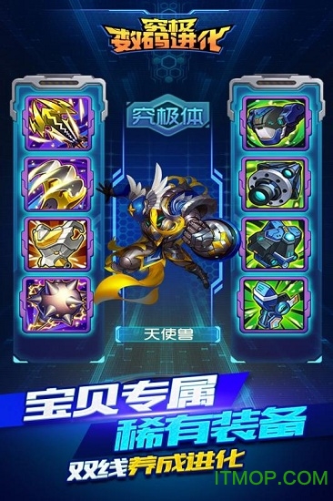 究极数码进化是由北京赛博创成科技有限公司研发的一款以幻想中的世界为背景的卡通 卡牌游戏 ,精致的卡通角色,可爱的宝贝将带您回顾孩提时期对勇气、友情、诚实、希望等美好品质的感动与向往。