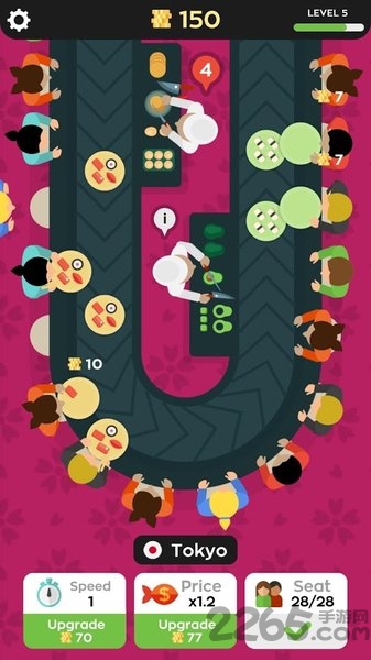 回转寿司店正式版 是一款经营类手机游戏,游戏玩法简单,采用简约的画风 设计 ,游戏中玩家需要靠自己的经营头脑扩大自己的餐厅规模,非常的有趣,喜欢的朋友来2265安卓网下载吧!