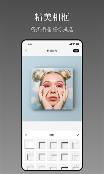 一副相框 中有丰富的艺术画框可以选择,为照片进行装裱,变得非常具有艺术感,现代框、木纹框、古典框、儿童框一应俱全,多种场景任意切换,非常的神奇,同时还有众多卡纸可以选择哦,喜爱的朋友赶快下载体验吧!