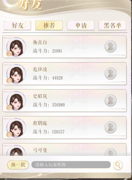 小主对推荐的不满意可以选择换一批哦,对于不喜欢的其他小主,小主选择可以添加到黑名单,这样就不会被打扰了。