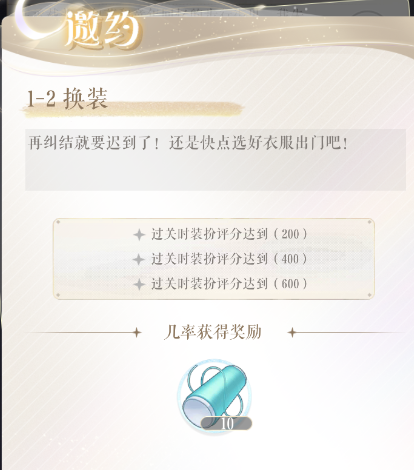 在邂逅章节中通关换装关卡,可以获得服装制作材料,通过服装工坊可以合成精美服饰,为下次约会做好准备。