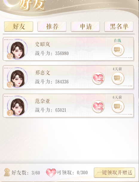 小主记得多添加下其他小主,友情点不仅是小主之间友情的见证,也是可以兑换很多道具,可以助力小主成长的。