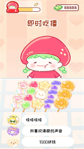 只有新鲜的水果的话,很难以一名吃播实况主存活下来。还要有松饼、地球软糖、青阳辣椒!利用奇特的材料制作糖葫芦吧!