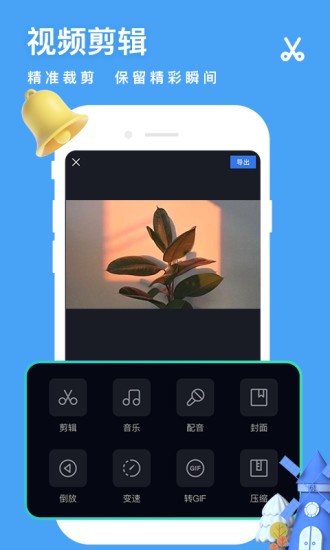 3、轻松编辑视频,各种丰富的编辑功能等你来使用,如尺寸裁剪,体积压缩等