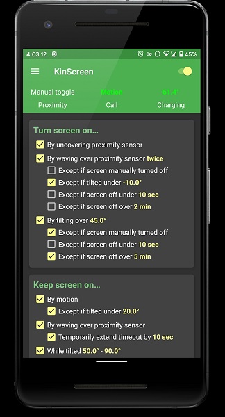 1、挥过距离传感器是保持屏幕打开的另一种方法,并且可以选择延长超时时间