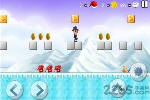 这是一个 休闲 游戏,看看马里奥在新的一年中会有什么精彩的冒险之旅呢?游戏背景是一座覆盖着冰雪的雪峰,画面非常精美。马里奥为了准备新年开启了他新的旅程,游戏中马里奥会一直前行,前进的途中会遇到蜗牛和其他障碍物,他要尽量避免碰到这些阻碍者,并收集到更多的金币和圣诞老人的帽子来赚取星级。
