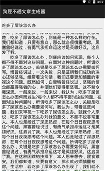 狗屁不通文章生成器安卓版是一款非常好用的文字生成APP,每一个智能系统使用过程都可以让用户得到更愉快写作,写作的文件可以通过智能的方式直接完成不同的文本生成,生成的速度超快并且所有生成功能都是免费提供。