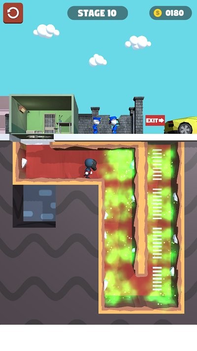 在游戏中玩家需要躲避警察的追捕,迅速的逃脱出去.游戏中拥有着很多的关卡,以及超多的魔性挑战等你来体验。简洁清新的游戏画风所有人都可以轻松上手进行游玩,感兴趣的玩家快来免费下载吧!