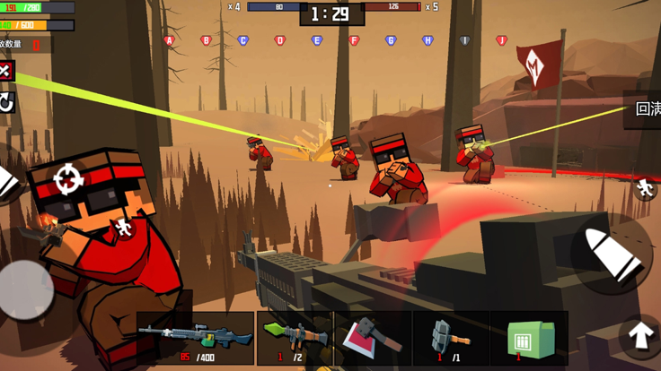 红蓝对抗赛是一款非常刺激的枪战手游,玩家进入游戏将会给你匹配适合的队友进行战斗,只有团结合作才有可能突出重围打败对方队伍中的人,不仅如此还有各种枪械供玩家自由使用帮助玩家更胜一筹!游戏特色1、击败你的敌人并获得更多积分。2、极简主义的游戏绘画风格,