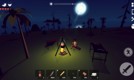 3、在游戏中玩家将会独自一人在荒岛上生存,你需要随时注意你的饥饿度、体温等各状态。