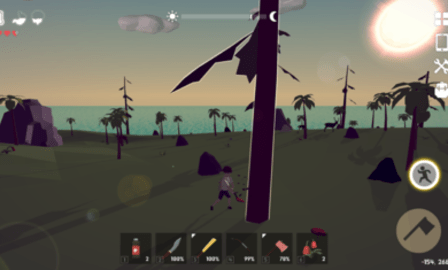 真实的昼夜交替和天气变化系统,除了能够探索荒岛之外,还能够建造小船在海面狩猎。