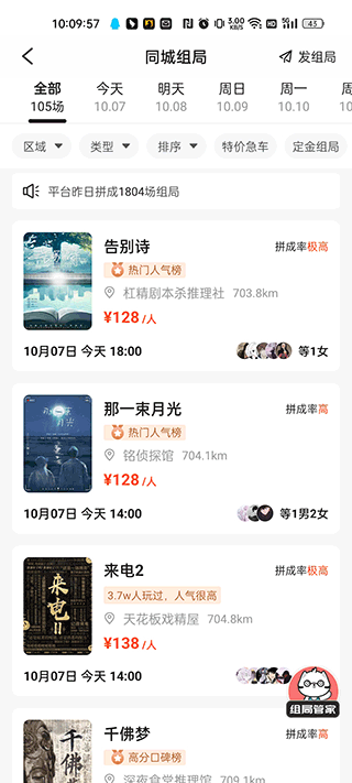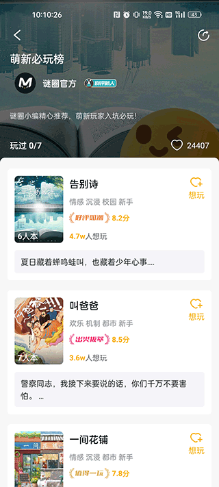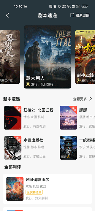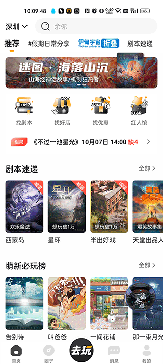 谜圈 是一款具有超高人气的剧本杀组队交流社交平台,喜欢剧本杀以及密室逃脱爱好者千万不能错过,在这里你可以找到和你趣味相投的剧本杀伙伴,一起交流分享好剧本和喜欢的密室主题,还可以互相安利当地优质剧本杀线下店以及密室主题店。你还可以在上面优选店铺,以较低的价格玩到高质量的本子,还有公共平台可以给玩过的本子进行评分,一起趣味互动,都是货真价实的真人点评哦。不仅如此,还可以线下组队一起玩,享受同行优惠,每天都有超值优惠,可以以超低价格拿下热门本子。