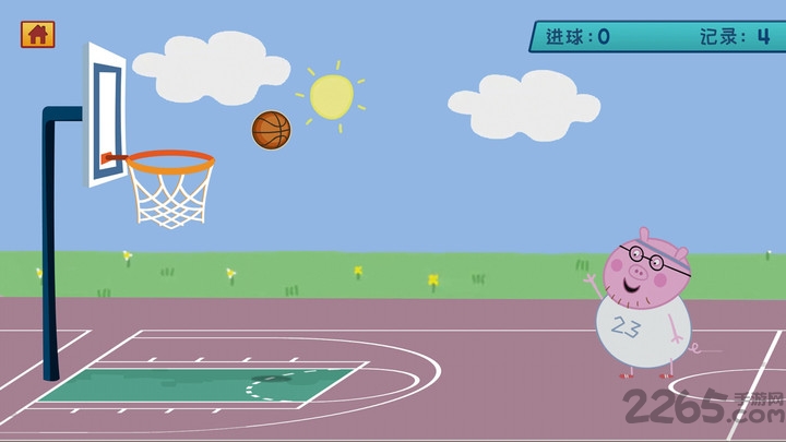 2、2265玩家通过点击和长按能够控制小猪进行投篮,容易上手,但是想要拿高分有点难;