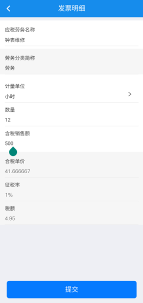 4、接着填写发票明细,然后点击提交。