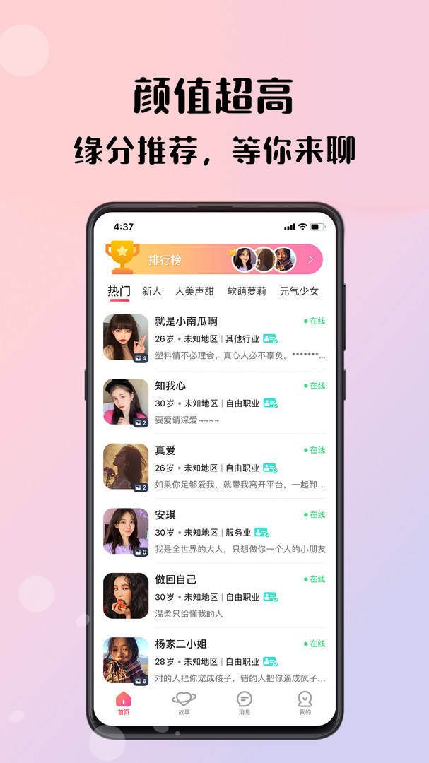 2、并且各种的用户信息开启了具体的引见,你可以按照本身的乐趣去精准挑选,可以更好的交到聊的来的小伙伴;