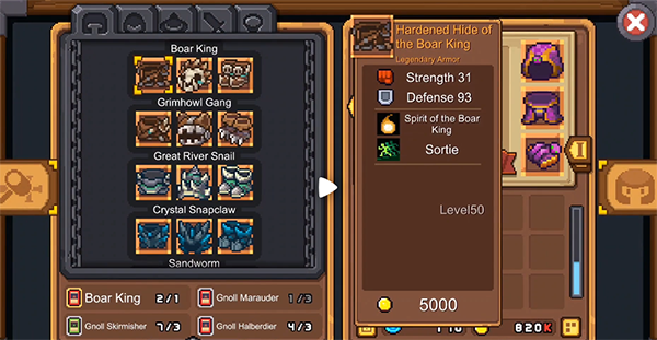 装备可以从商店或者宝箱商人处购买获得、抽取获得,这里的装备都可以在铁匠处进行强化。
