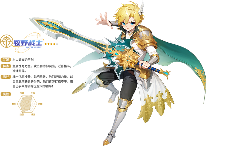 描述:战士沉稳冷静、聪明勇敢。他们崇尚力量,以自己宽厚的肩膀为荣。他们喜好打抱不平,用自己手中的剑捍卫世间的和平!