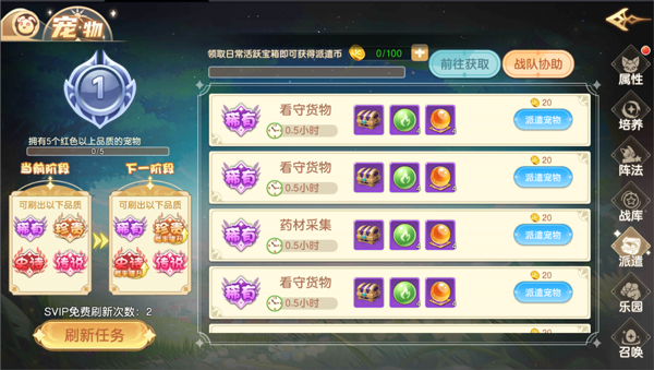通过宠物之间的组合搭配,形成阵法后,战力可是能大大提升!