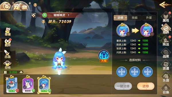 5、当成功获取宠物后,冒险家便可以开始培养啦,通过喂食提升等级,通过洗练提升各方面属性。