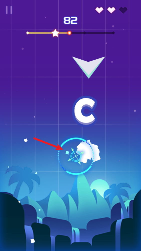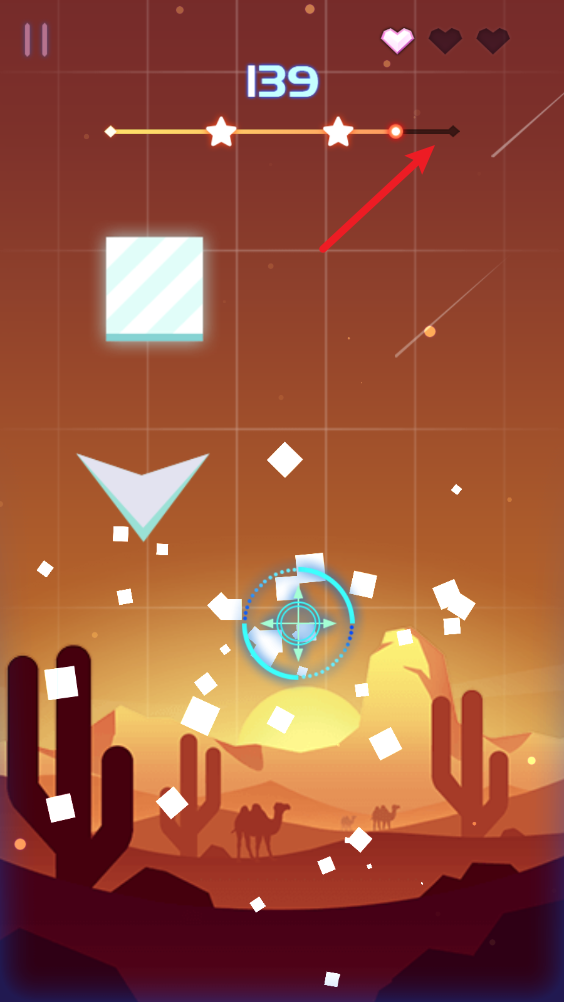 5、不断射击音符可以提升上方的进度条,满了之后就能获得三星评价。