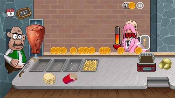 玩家可以按照里面的顾客提出的需求,使用各种的食材来制作,然后把完成好的卷饼递交客人;