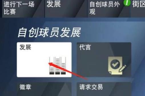 1.打开游戏当中,打开辉煌生涯模式,点击辉煌生涯首页中“发展”选项。